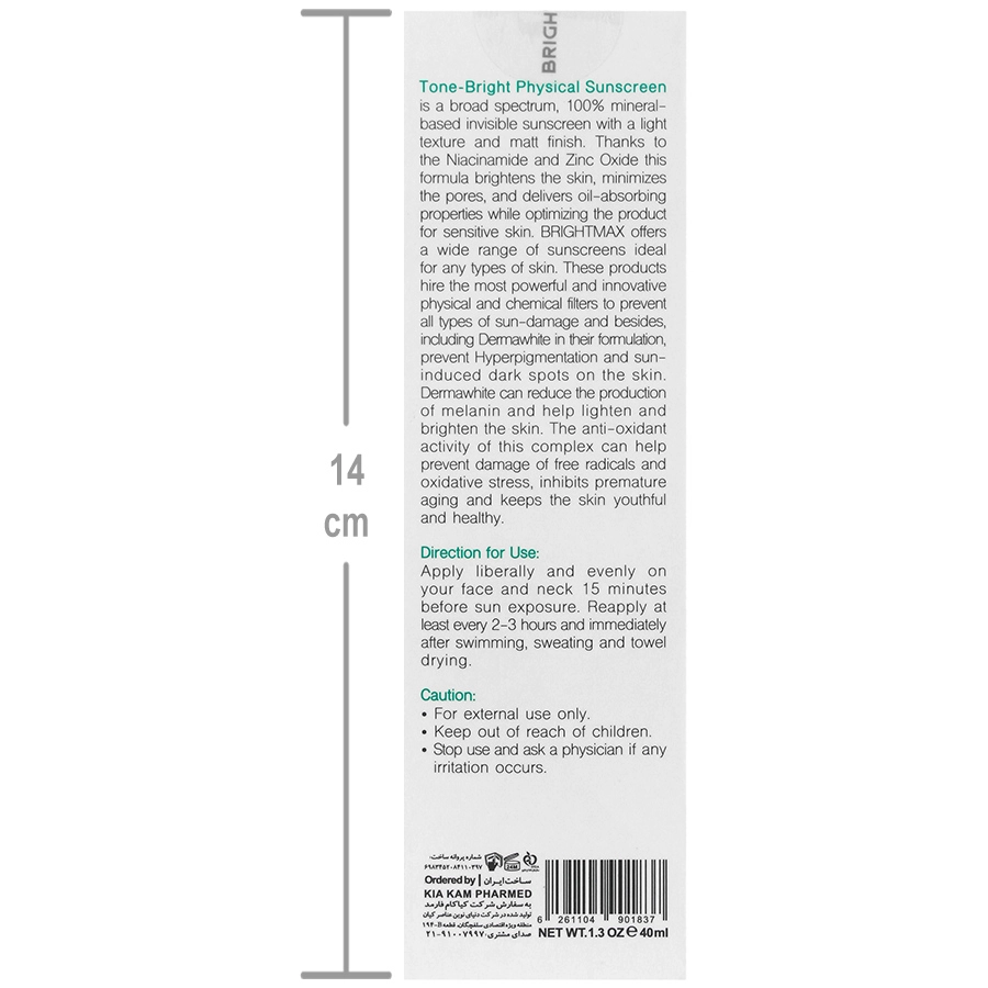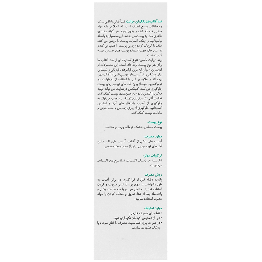 • ضدافتاب فیزیکال برایت مکس، مناسب برای انواع پوست حتی پوست حساس