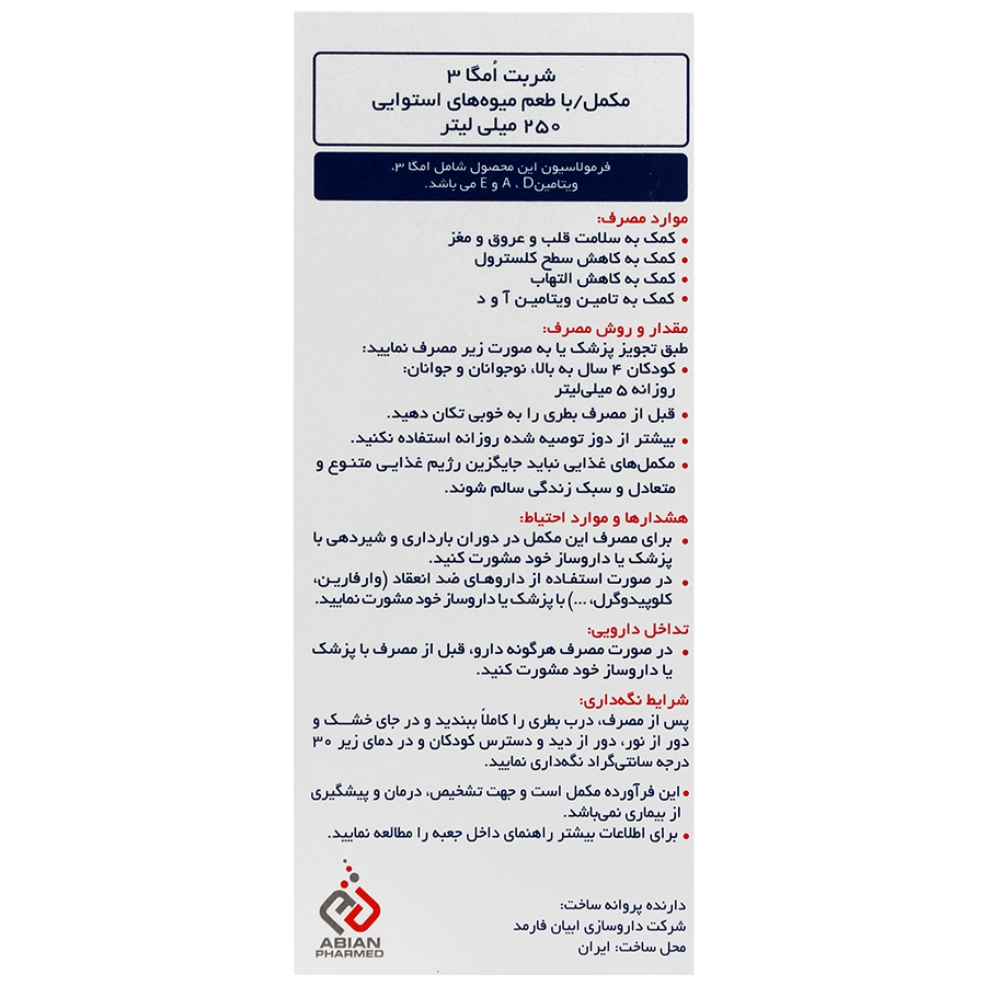 فرمولاسیون این محصول شامل امگا 3، ویتامین های D ،A و E می باشد. اسیدهای چرب امگا 3 گروهی از اسیدهای چرب غیر اشباع چندگانه هستند و دارای نقش مهمی در حفظ ساختار سلول و عملکردهای مهم بدن می باشند.