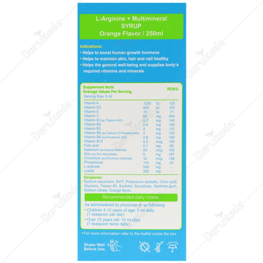 حاوی ال-آرژنین، اسیدهای آمینه، مولتی ویتامین، مولتی مینرال و لیزین