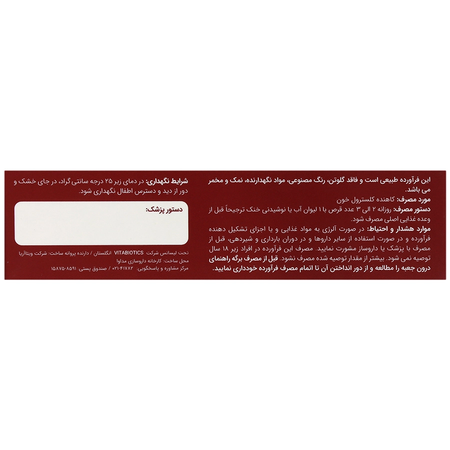 این محصول تحت امتیاز و لیسانس شرکت Vitabiotics کشور انگلستان، دارنده پروانه ساخت شرکت ویتا آریا و محل ساخت آن کارخانه داروسازی مداوا در ایران می باشد.