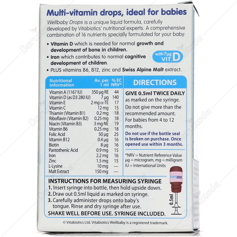 کودکان از 4 تا 12 ماه: روزانه 2 بار و هر مرتبه نیم میلی لیتر تا خط نشانه روی سرنگ مدرج میل شود.