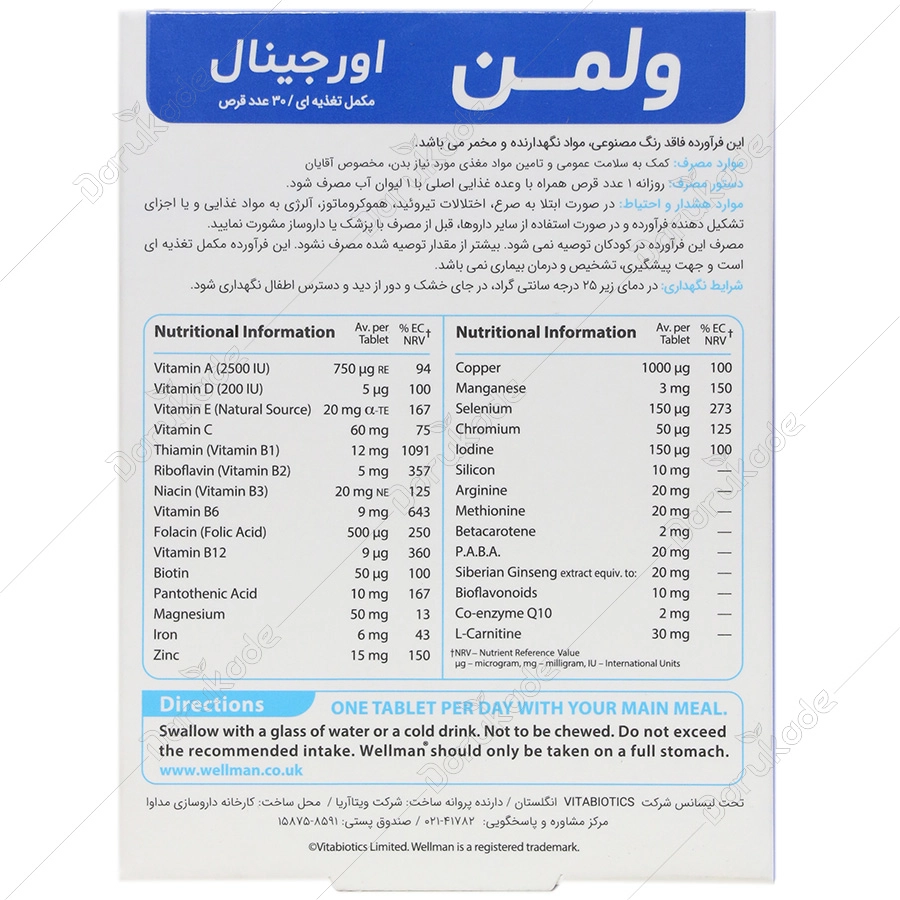 مولتی ویتامین ول من تحت لیسانس شرکت vitabiotics انگلستان، دارنده پروانه ساخت شرکت ویتاآریا محل ساخت کارخانه داروسازی مداوا