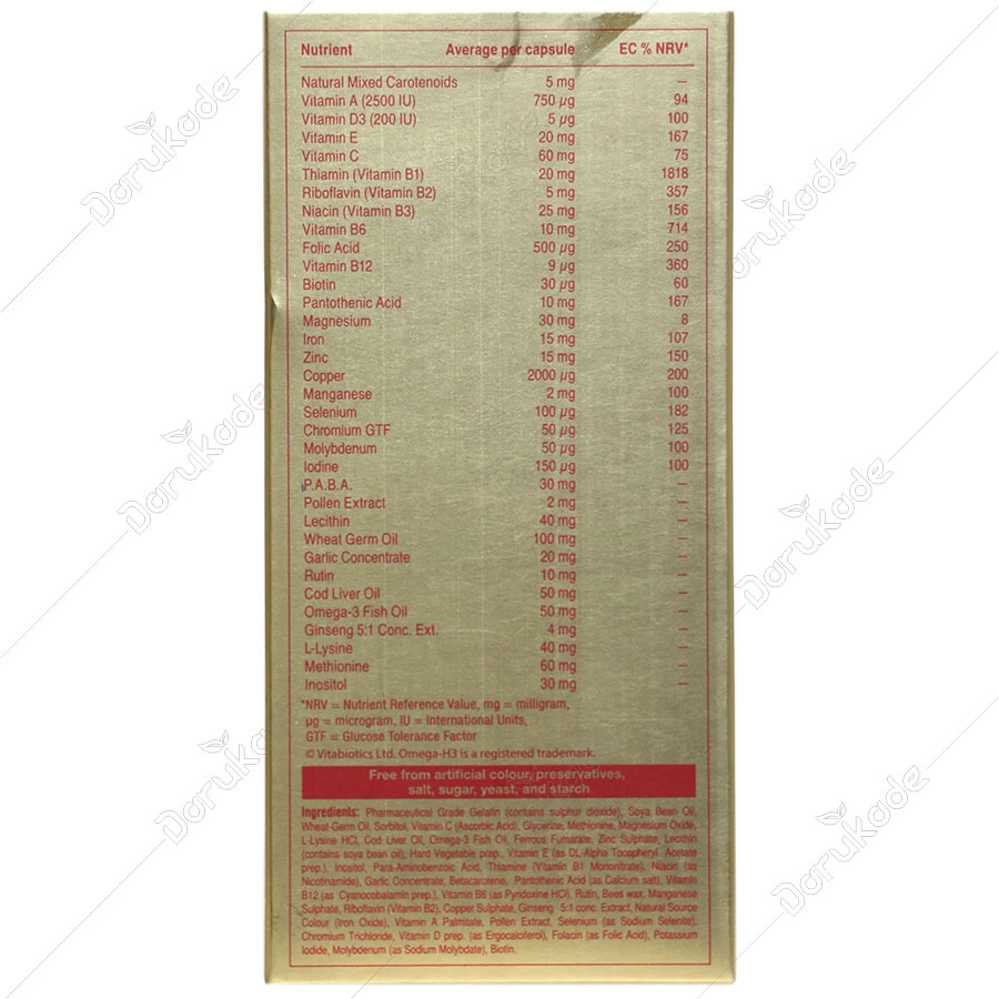 حاوی 33 ماده ی مغذی شامل ویتامین ها، مواد معدنی و امگا-3
