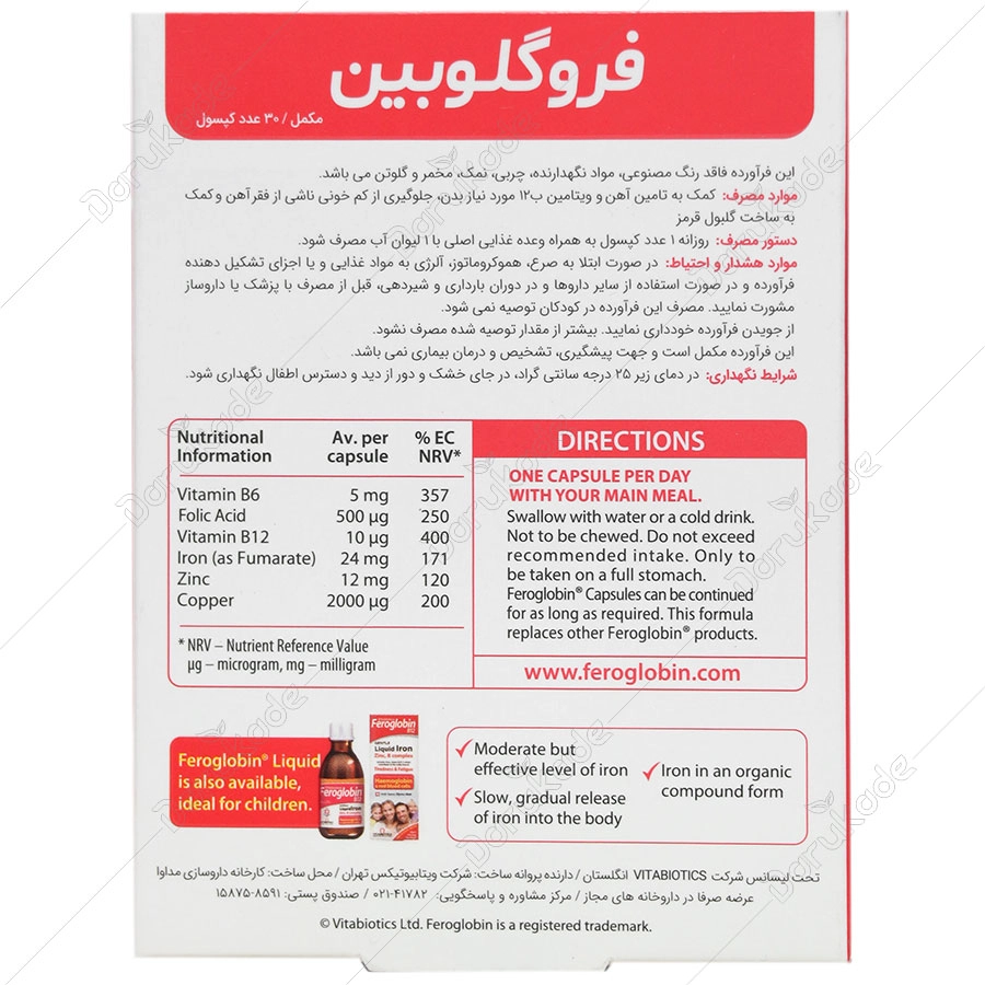 روزانه یک عدد کپسول فروگلوبین در روز به همراه وعده غذایی اصلی با یک لیوان آب مصرف شود.