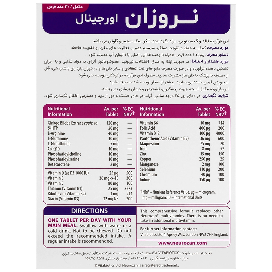 قرص نروزان حاوی انواع ویتامین ها و مواد معدنی مورد نیاز بدن