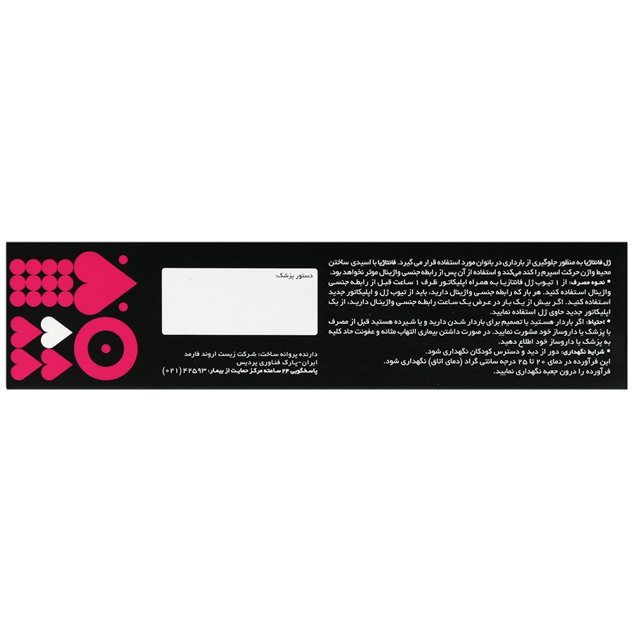 از 1 تیوپ ژل فانتاژیا به همراه اپلیکاتور ظرف 1 ساعت قبل از رابطه جنسی واژینال استفاده کنید.