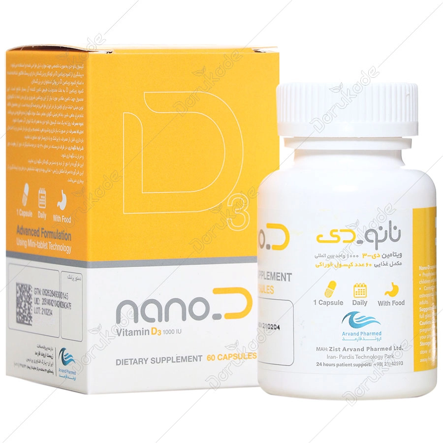 کپسول نانو-دی حاوی ویتامین D3 می باشد که جهت تنظیم جذب و متابولیسم کلسیم و استقرار آن در داخل بافت استخوانی استفاده می شود. ویتامین D جهت جذب کلسیم از لوله گوارش و عملکرد کلسیم در بدن اهمیت دارد. به علاوه جهت پیشگیری از مشکلات ناشی از کمبود ویتامین D، به ویژه در پوست و استخوان مصرف می شود. ویتامین D ممکن است در موارد دیگری که در این راهنما به آن اشاره نشده است، نیز استفاده شود.