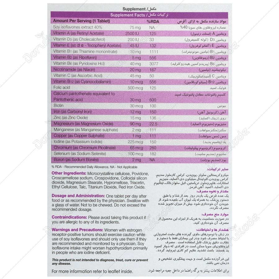 حاوی ایزوفلاون های سویا و مواد مغذی ضروری جهت کمک به کاهش علائم دوران یائسگی