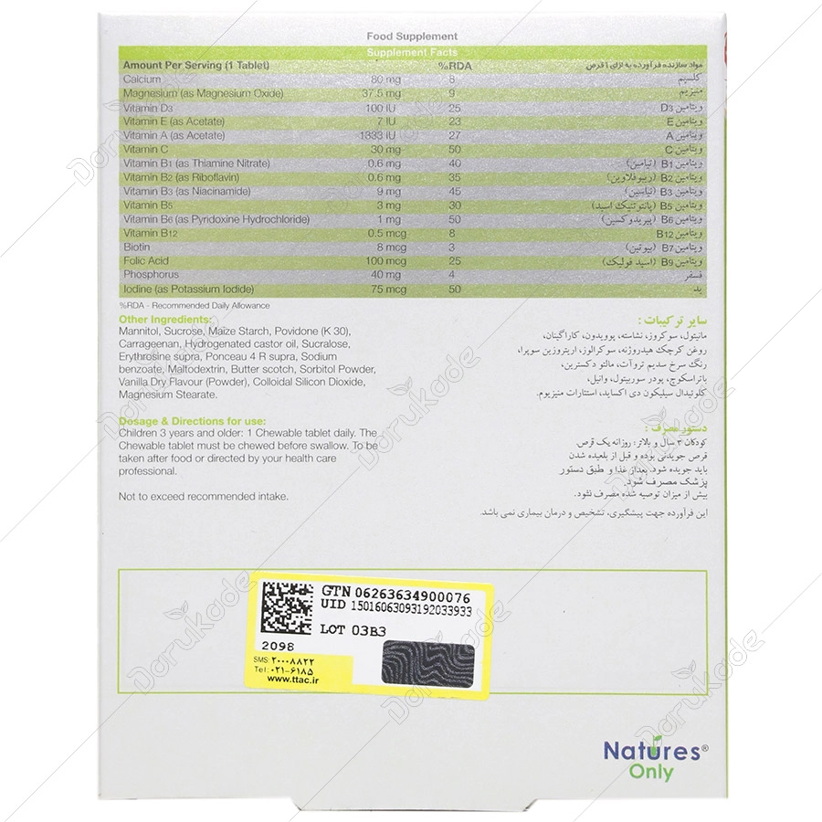 کودکان 3 سال و بالاتر: روزانه یک قرص (بعد از غذا و طبق دستور پزشک مصرف شود. بیش از میزان توصیه شده مصرف نشود.)