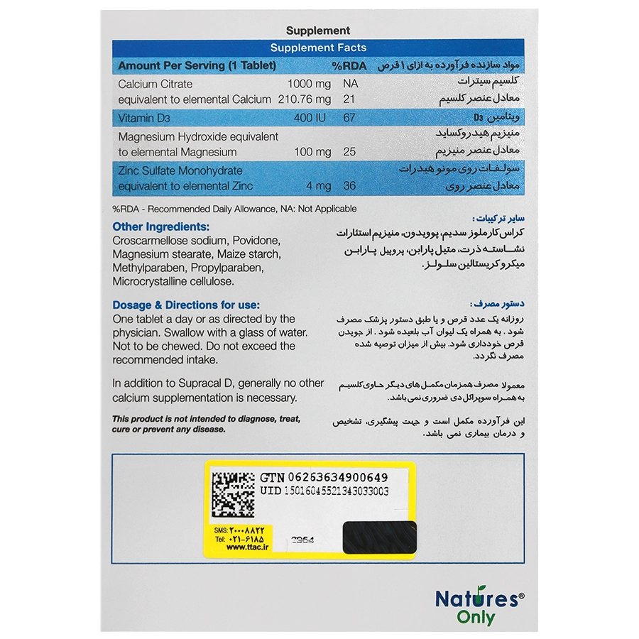 حاوی کلسیم سیترات، روی، منیزیم، ویتامین D3