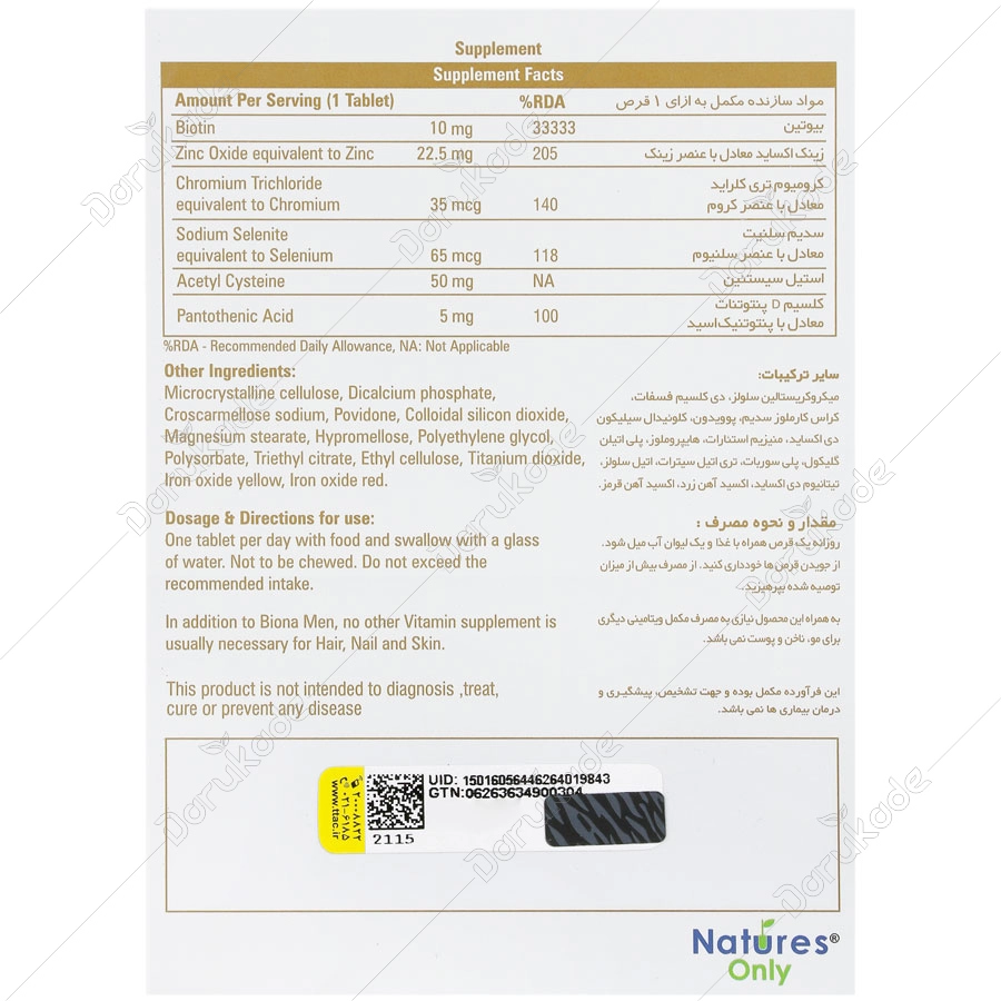 بایونا من یک قرص روکش دار است که جهت تامین ریز مغذی های ضروری برای رشد مو و ناخن مورد نیاز است.