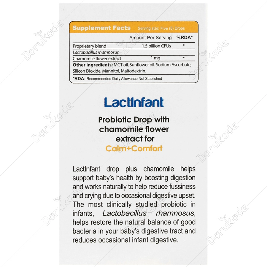 مواد فعال در هر دوز مصرفی: باکتری لاکتوباسیلوس رامنوسوس به میزان 1.5 میلیارد و عصاره گل بابونه به میزان 1 میلی گرم