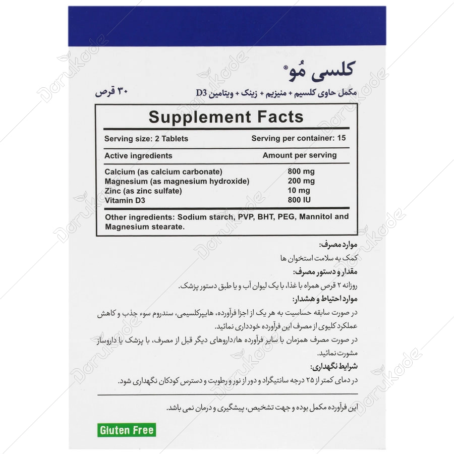 کلسی مو، حاوی کلسیم به فرم کربنات، منیزیم، زینک و ویتامین D