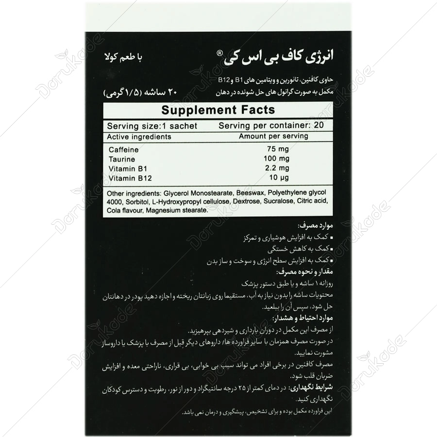 حاوی کافئین، تائورین و ویتامین های B1 و B12