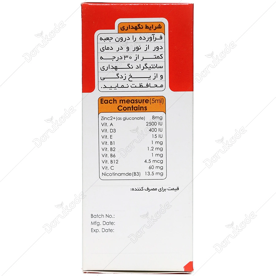 - این فرآورده حاوی مجموعه ای از ویتامین ها ، مواد معدنی ضروری و مورد نیاز بدن می باشد که به عنوان مکمل رژیمی - غذایی کاربرد دارد - روی ماده ی معدنی اختصاصی است که سبب فعال شدن بیش از 70 آنزیم می گردد. - از مزایای روی می توان به تقویت سیستم دفاعی بدن و کاهش التهاب اشاره کرد. - روی اهمیت زیادی در رشد ، تکامل و سلامتی بدن و بافت ها دارد. - ویتامین گروه B بخش مهمی از متابولیسم آمینواسیدها را تکمیل می کنند. - ویتامین های گروه B سبب بهبود رشد و سلامتی کودکان می گردند و در فرآیند رشد جزو ویتامین های ضروری هستند - ترکیبات موجود در این فرآورده همچنین سبب بهبود رشد مو و افزایش استحکام ناخن ها می شوند.