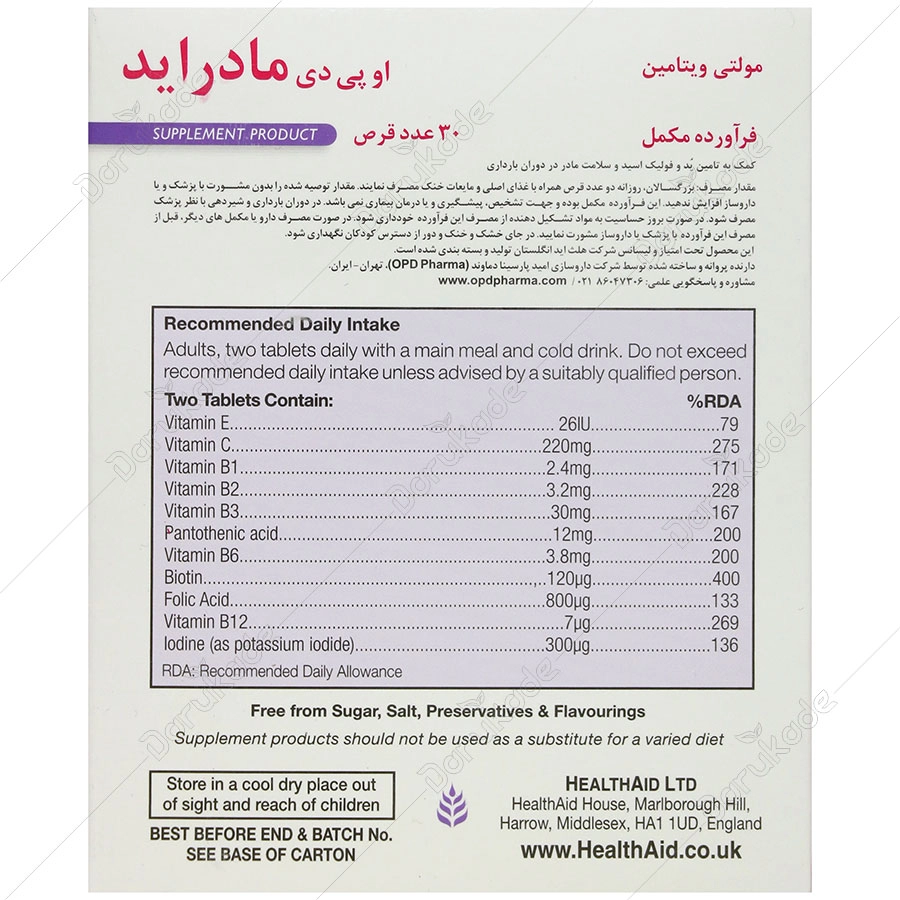حاوی مولتی ویتامین، ید و فولیک اسید