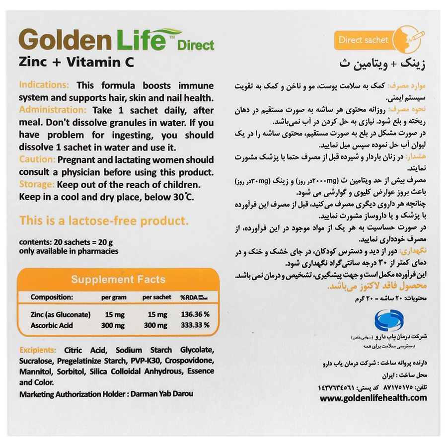 | زینک ( زینک گلوکونات ) | 15 mg |