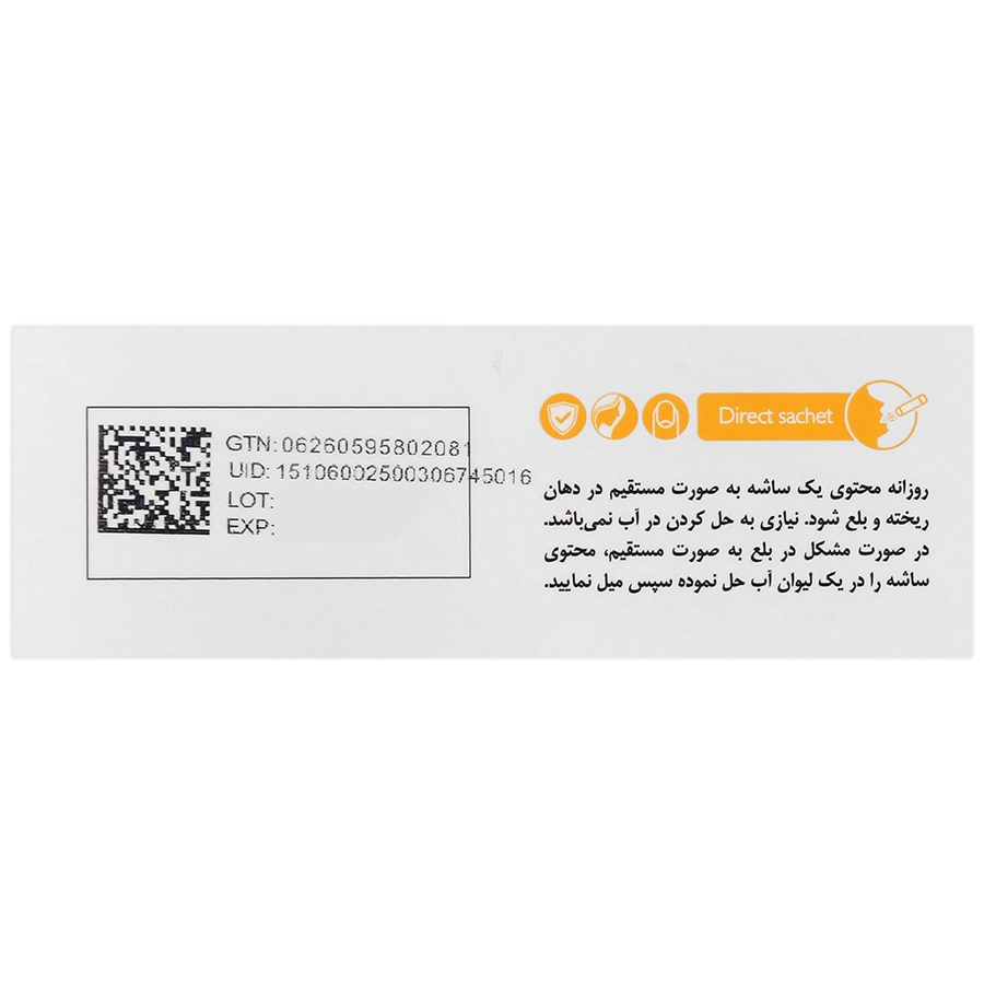 روزانه محتوی هر ساشه به صورت مستقیم در دهان ریخته و بلع شود.