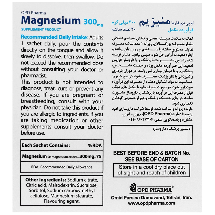 هر ساشه حاوی 300 میلی گرم منیزیم