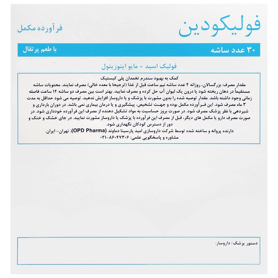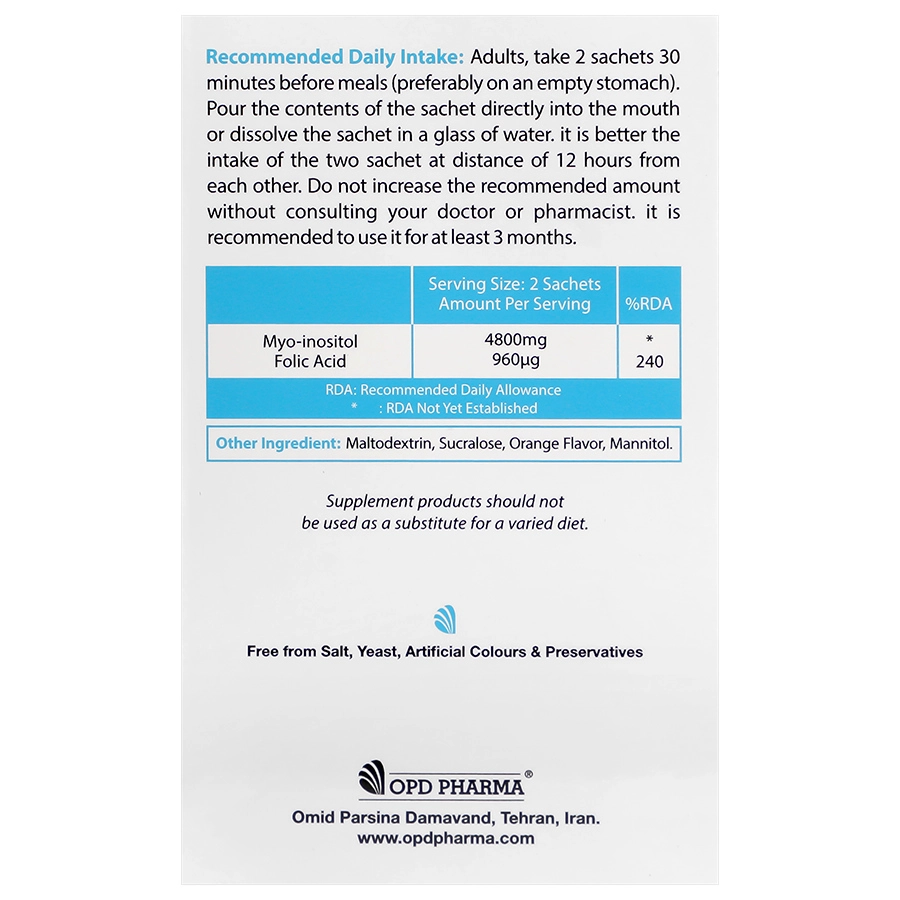 حاوی 2400 میلیگرم مایو-اینوزیتول و 480 میکروگرم اسید فولیک
