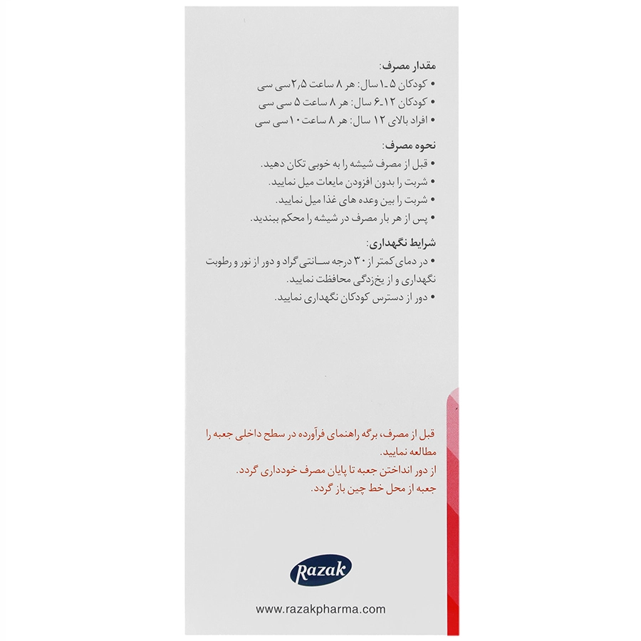 کودکان 5-1 سال: هر 8 ساعت 2.5 سی سی