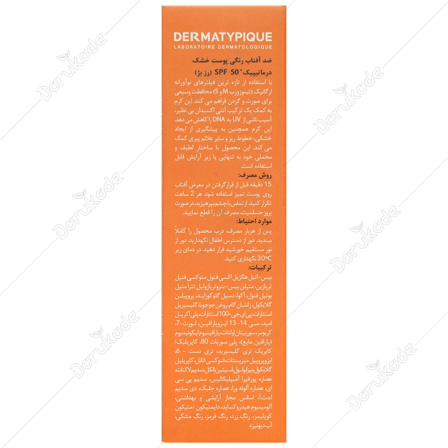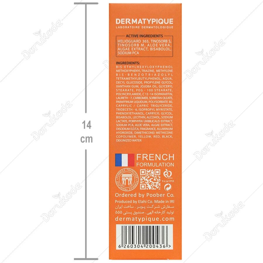 ضد آفتاب پوست خشک درماتیپیک SPF50 با استفاده از تازه ترین فیلترهای نوآورانه ارگانیک (تینوزورب M و S) محافظت وسیعی برای صورت و گردن فراهم می کند این کرم به کمک یک ترکیب آنتی اکسیدان بی نظیر، آسیب ناشی از UV به DNA را کاهش می دهد. این محصول همچنین به پیشگیری از ایجاد خشکی، خطوط ریز و سایر علائم پیری کمک می کند. این محصول با ساختار لطیف و مخملی خود به تنهایی یا زیر آرایش قابل استفاده است.