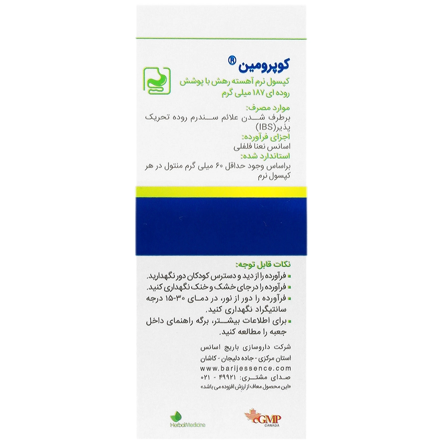 استاندارد شده بر اساس وجود حداقل 60 میلی گرم منتول در هر کپسول نرم