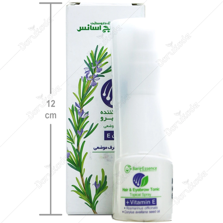 اجزاء فرآورده: اسانس رزماری ، روغن فندق، ویتامین E بهترین عامل در بهداشت و سلامت مو در درجه اول، تغذیه سالم و جریان گردش خون مناسب در پوست سر می باشد. ماساژ و استفاده از مواد موثر روی پوست سر نه تنها رشد مو را تسریع می کند بلکه از آن محافظت کرده و علاوه بر تقویت مو ، از ریزش غیر معمول آن نیز می کاهد. مصرف موضعی اسانس رزماری گردش خون را بهبود می بخشد، وجود همین مواد موثره در فرآورده تقویت مو و ابرو باریج سبب ، بهبود گردش خون محیطی و تغذیه بهتر فولیکول مو می شوند. بر طبق تحقیقات بعمل آمده افراد دارای ریزش مو، معمولاً آنتی اکسیدان های کمتری در ناحیه پوست سر خود دارند. ویتامین E بواسطه دارا بودن اثرات آنتی اکسیدانی عاملی در برطرف کردن این نقیصه خواهد بود. ویتامین E استخراج شده از فندق در فرآورده تقویت مو و ابروی باریج، از آنتی اکسیدانهای قوی محسوب شده و قادراست تعداد تارهای مو را در افراد دارای ریزش مو افزایش دهد. رزماری دارای اثرات فارماکولوژیک مختلفی مانند ضدالتهاب و آنتی اکسیدان است. ترپن ها و ترپنوئیدهای موجود در رزماری باعث دیلاتاسیون عروق، بهبود گردش خون محیطی و تغذیه بهتر فولیکول مو می شوند. در انسان، مصرف موضعی اسانس رزماری گردش خون را بهبود می بخشد که به علت اثرات مشخص آن روی پوست است.