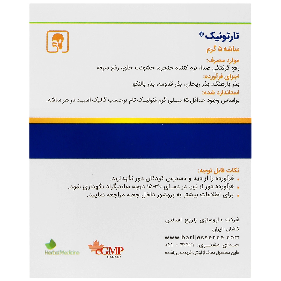 مقادیر ذکر شده از ساشه تارتونیک (برای گروه های سنی مختلف) را در یک لیوان آب داغ (200 سی سی) بریزید، بعد از 10 تا 15 دقیقه که لعاب آن آزاد شد، قاشق قاشق مصرف نمایید.
