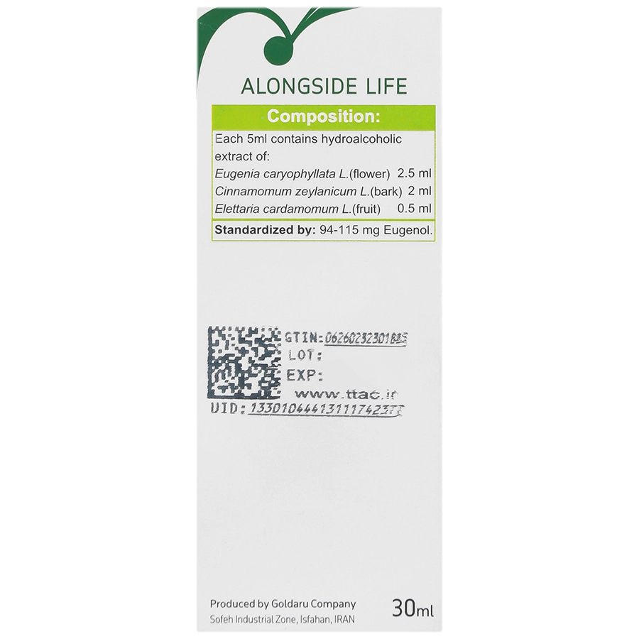 حاوی عصاره هیدرو الکلی پودر خشک شده غنچه و گل میخک، پوست ساقه دارچین و میوه هل