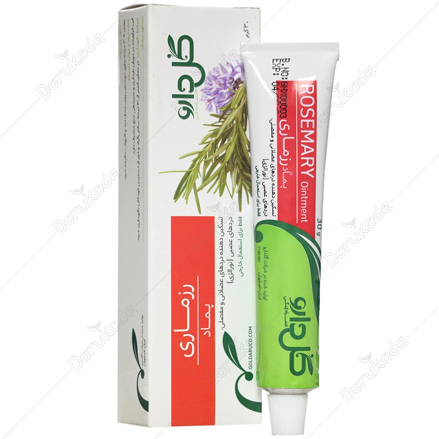 پماد رزماری فراورده ایست که از اسانس رزماری، منتول و کامفر تهیه شده است. رزماری گیاهی است که از قدیم برای درمان رماتیسم، دردهای عضلانی و مفاصل به کار می رفته است. امروزه نیز اثرات فارماکولوژیک ضد التهاب و ضد درد آن ثابت شده است. روغن اصلی رزماری حاوی ترکیبات ترپن شامل مونوترپن ها، دی ترپن ها و سزکوئی ترپن ها می باشد. پلی فنول ها شامل اپی ژنین، اوژنول، اسید رزمارینیک و اسید کافئیک می باشند. مطالعات امروزه اثر ضد درد و ضد التهاب کارنوزیک و اورسولیک اسید را ثابت نموده است، به گونه ای که التهاب ایجاد شده توسط کاراژینان در پای موش صحرائی، با استفاده از این گیاه کاهش یافته است. مکانسیم اثر ضد التهاب شامل مهار 5 لیپو اکسیژناز و سیکلواکسیژناز می باشد. 1و 8 -سینئول موجود در این گیاه سبب مهار تشکیل مدیاتورهای التهاب یعنی پروستا گلاندین ها، لکوترین ها وسیتوکین ها گشته و به همین علت در بیماران مبتلا به استئو ارتریت وآرتریت روماتوئید استفاده موضعی آن سبب کاهش حس درد می گردد. اوژنول موجود در این گیاه نیز با اثر بر رسپتور A گاما آمینو بوتیریک اسید (GABA) در نرون های عصب تری ژمو، سبب کاهش حس درد می شود. اسید رزمارینیک نیز با اثر بر قطعه C3b سیستم مکمل ایمنی پلاسما (کمپلمان) سبب کاهش التهاب می گردد. اثر مقایسه ای رزماری، منتول و دارونما بر گروهی از بیماران بستری در بخش همودیالیز بیمارستان خورشید اصفهان مورد بررسی و تحقیق قرار گرفت. دردهای اسکلتی عضلانی پس از انجام همودیالیز یکی از شکایات شایع بیماران این بخش می باشد. در این تحقیق استفاده موضعی از اسانس رزماری و همچنین منتول بر کاهش درد عضلانی اسکلتی در پای بیماران ثابت شده است. منتول با اتساع عروق خونی منطقه سبب افزایش گردش خون شده و از طرفی با بلوک کانال های کلسیمی در نرون ها سبب کاهش احساس درد می شود. کامفر موجود در این فرآورده با اثر بر رسپتورهای درد (TRPA1) سبب کاهش حس درد می گردد. اثر هم افزایی این سه گیاه در پماد رزماری باعث کاهش حس درد در بیماران می شود.