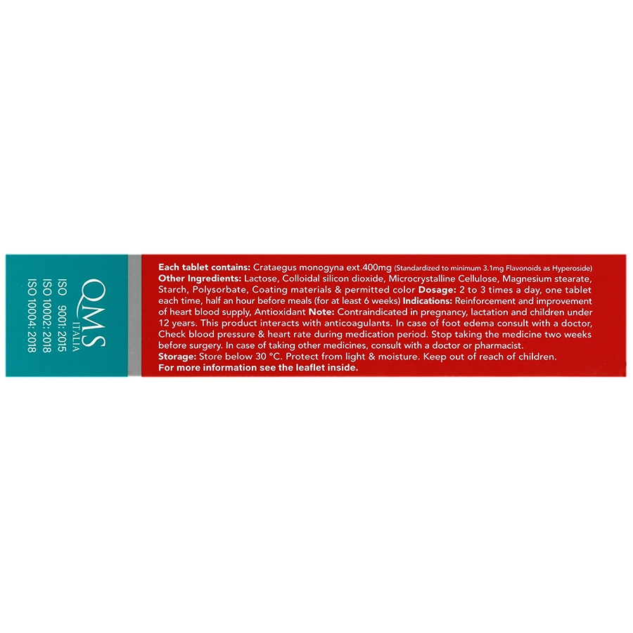 حاوی 400 میلی گرم عصاره خشک استاندارد کراتاگوس (معادل حداقل 3.1 میلی گرم هایپروزید)