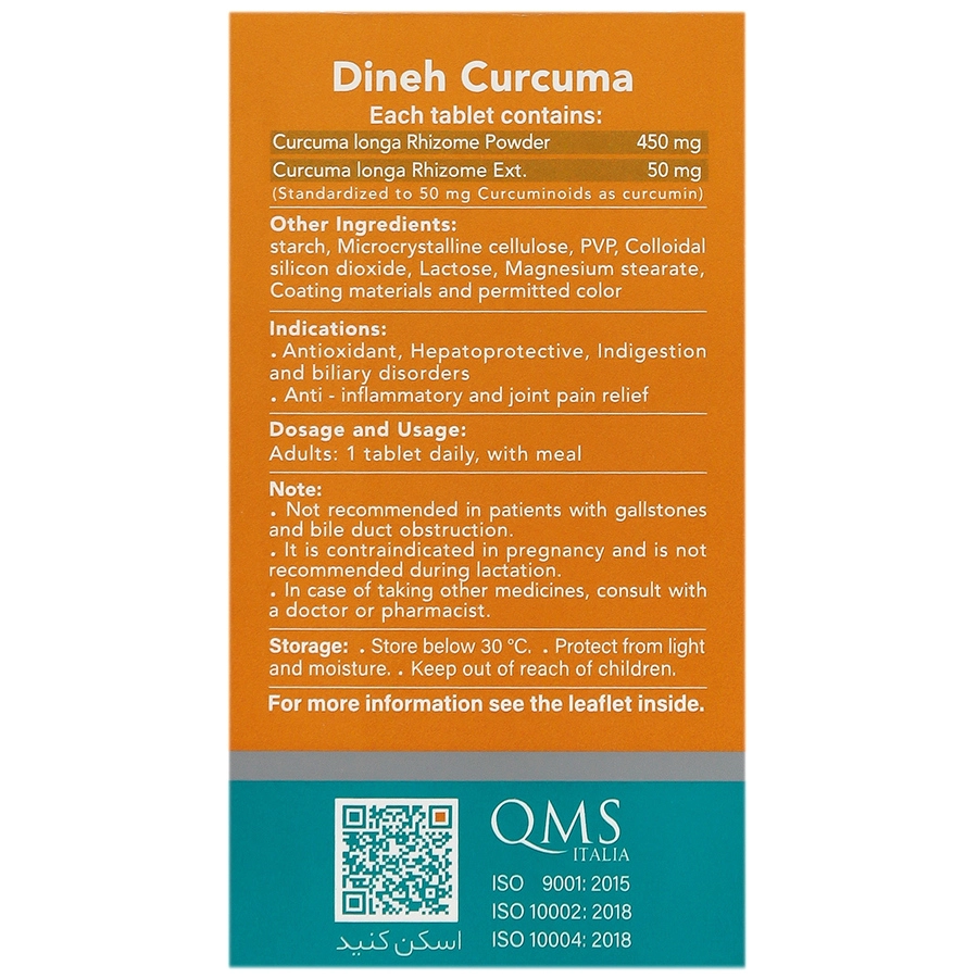 حاوی پودر ریزوم زردچوبه، عصاره ریزوم زردچوبه (استاندارد شده بر مبنای 50 میلی گرم کورکومین)