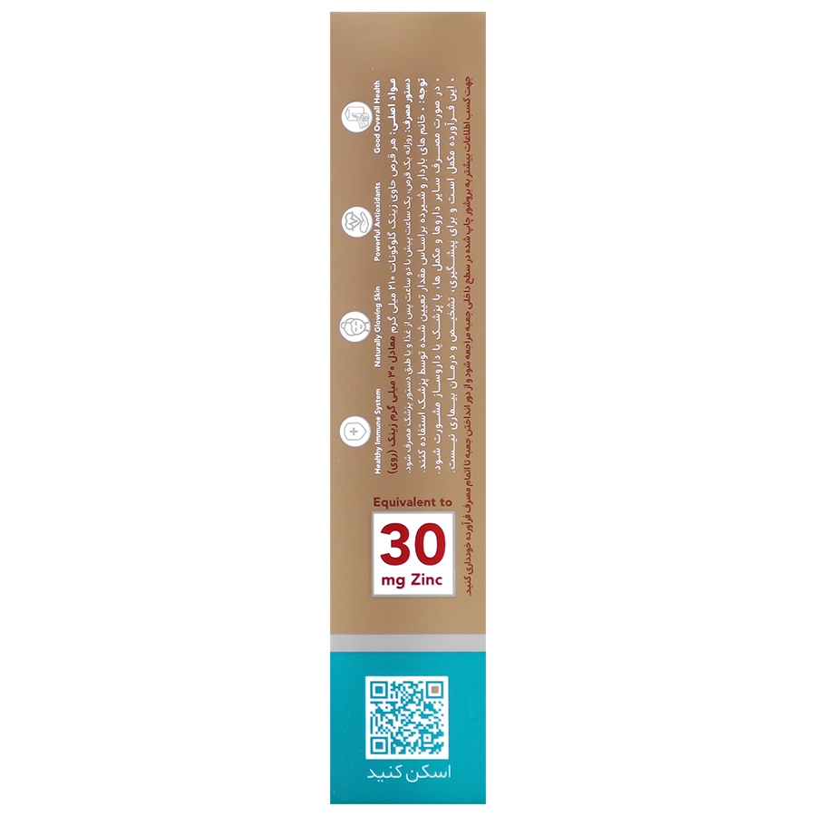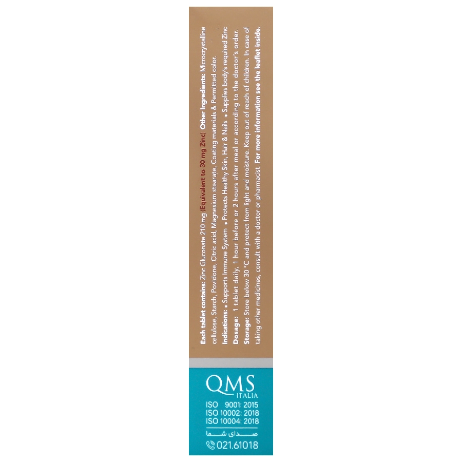 عوارض جانبی: مقادیر تا 30 میلی گرم زینک به صورت روزانه، به خوبی تحمل می شود. مقادیر بالاتر از آن، ممکن است سبب بروز اختلالات گوارشی شامل تهوع و استفراغ گردد. برای کاهش عوارض احتمالی گوارشی، بهتر است این مکمل پس از غذا مصرف شود.