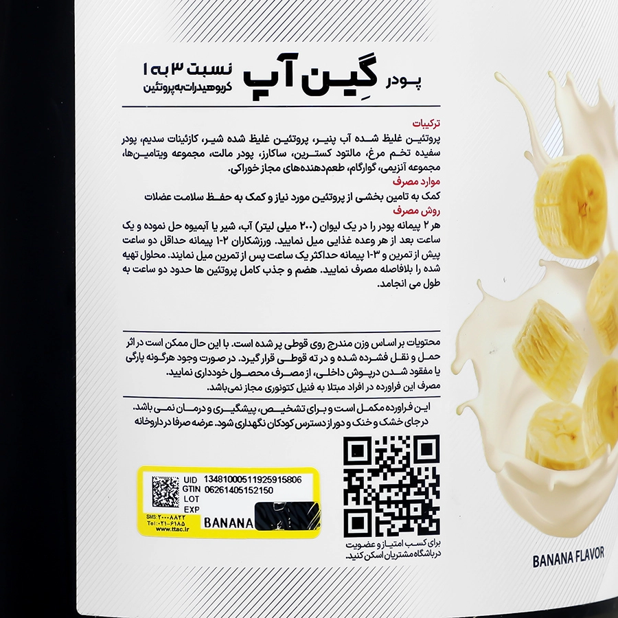 • حاوی 22% پروتئین از مخلوط پروتئین های شیر و Whey