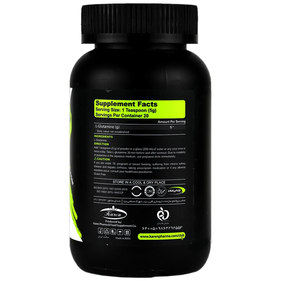 یک قاشق مرباخوری (5 گرم) پودر را در یک لیوان آب (200 میلی لیتر) آب یا آبمیوه حل کرده و یک تا دو بار در روز میل نمایید. برای حصول نتیجه بهتر گلوتامین را نیم ساعت پیش و پس از تمرین مصرف کنید. به دلیل ناپایداری گلوتامین در محلول، نوشیدنی تهیه شده بلافاصله مصرف شود.