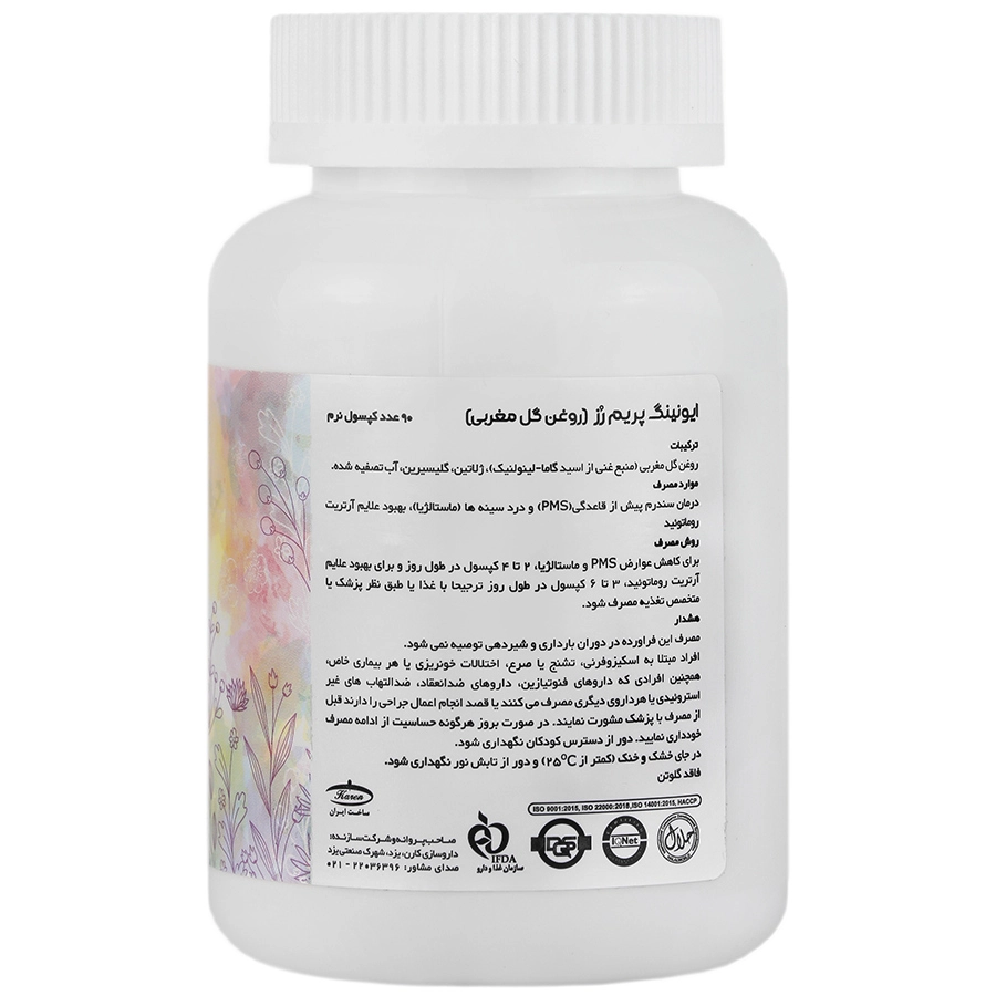 ترکیبات: روغن گل مغربی (منبع غنی از اسید گاما لینولنیک)، ژلاتین، گلیسیرین و آب تصفیه شده