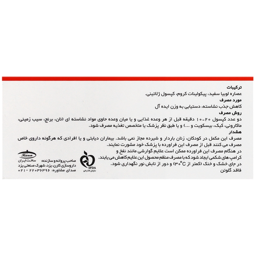• حاوی عصاره لوبیا سفید به همراه کروم پیکولینات