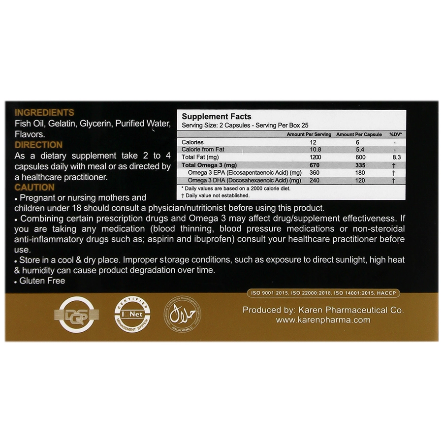| Total Omega 3 | 670 mg |