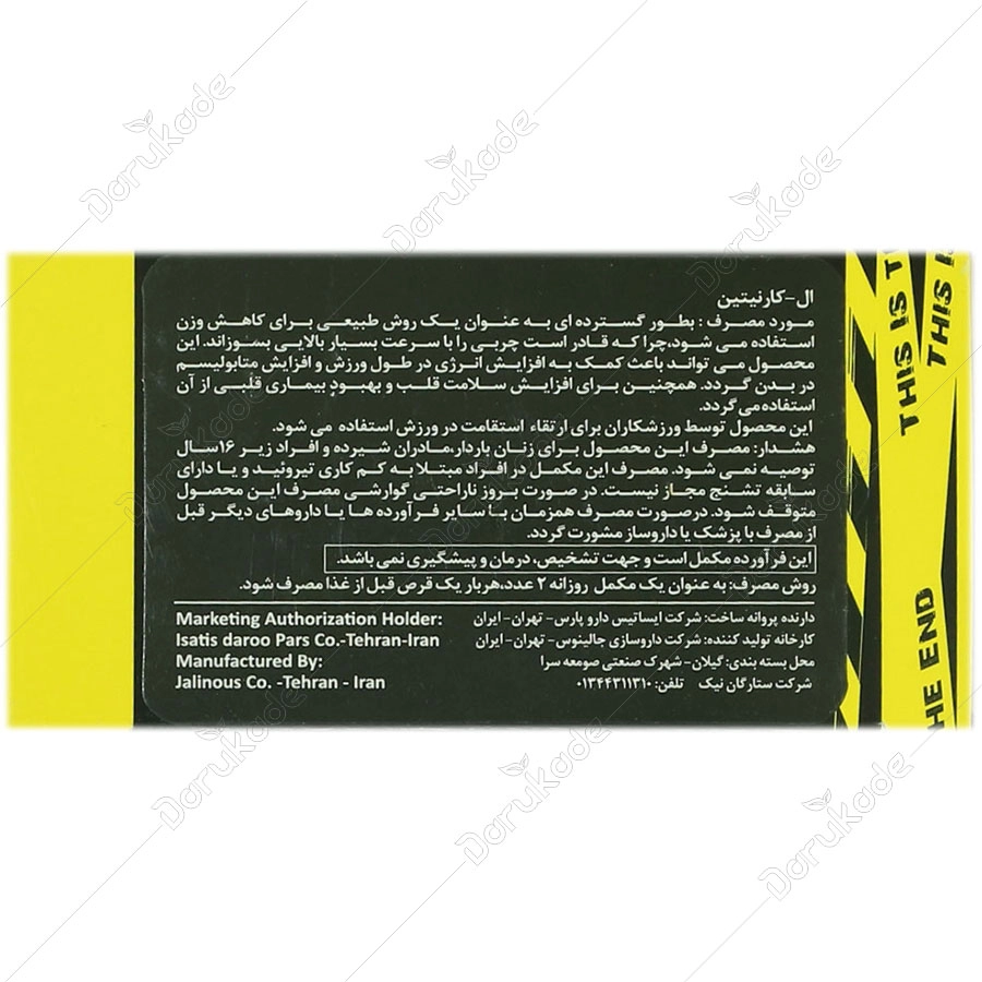 هر قرص حاوی 1000 میلی گرم ال کارنیتین