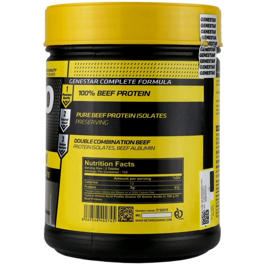 ترکیب پر قدرتی از آمینو اسیدهای موجود در گوشت خالص گاو است که از مرغوب ترین پروتئین ایزوله و آلبومین کنسانتره گوشت گاو تهیه شده است. هر قرص این محصول حاوی طیف کاملی از آمینو اسیدهای کنسانتره و دیگر ماد مغذی و ضروری است که صرفا از منابع گوشت گاو ممتاز استخراج شده است.