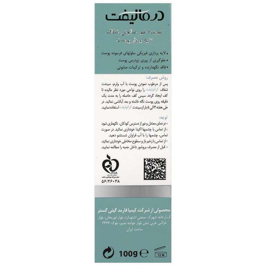 پس از مرطوب نمودن پوست با آب ولرم، سیندت شفاف کراتولیفت را روی نواحی مورد نظر مالیده تا کف ایجاد گردد.