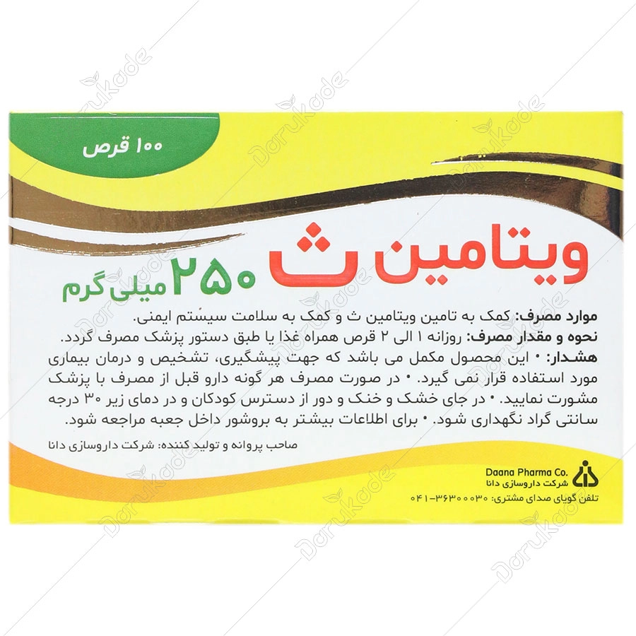 هر قرص حاوی ویتامین ث، 250 میلی گرمی