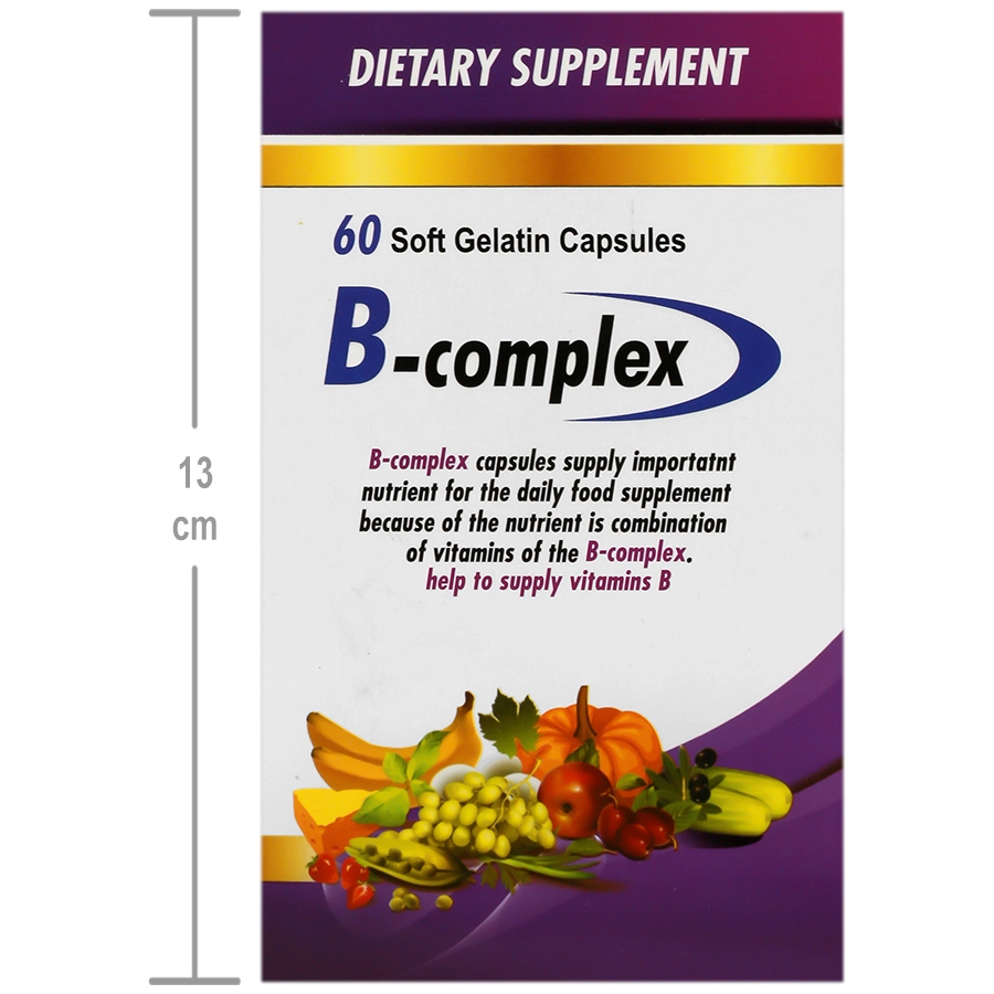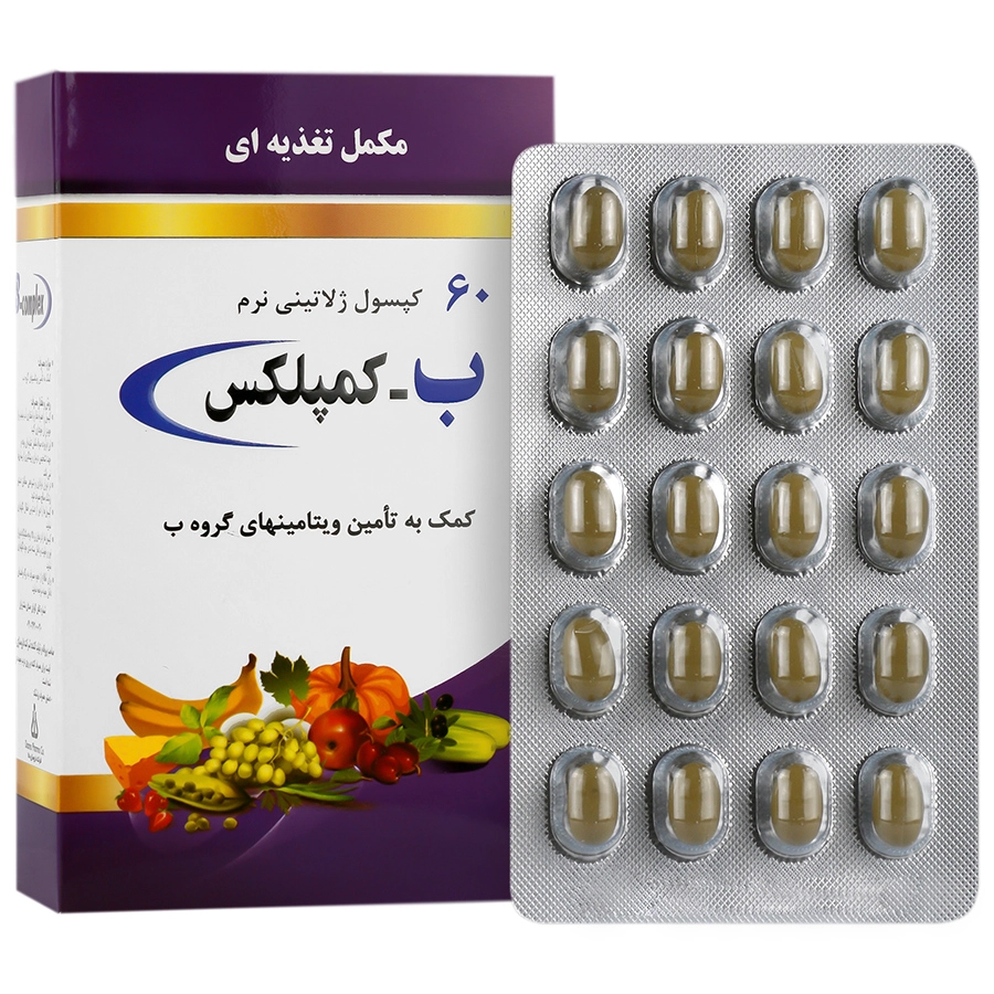 کپسول ب کمپلکس حاوی ویتامین های گروه ب (ب1، ب2، ب3، ب5، ب6، ب12)، بیوتین، اسید فولیک و مخمر می باشد. ویتامین های گروه B یکی از مهم ترین گروه ویتامین های موثر در سلامت پوست، مو و ناخن به شمار می روند. همچنین ویتامین های گروه B در سلامت سیستم عصبی و روانی، جلوگیری از اختلالات حواس و افسردگی تاثیر بسزایی دارند.