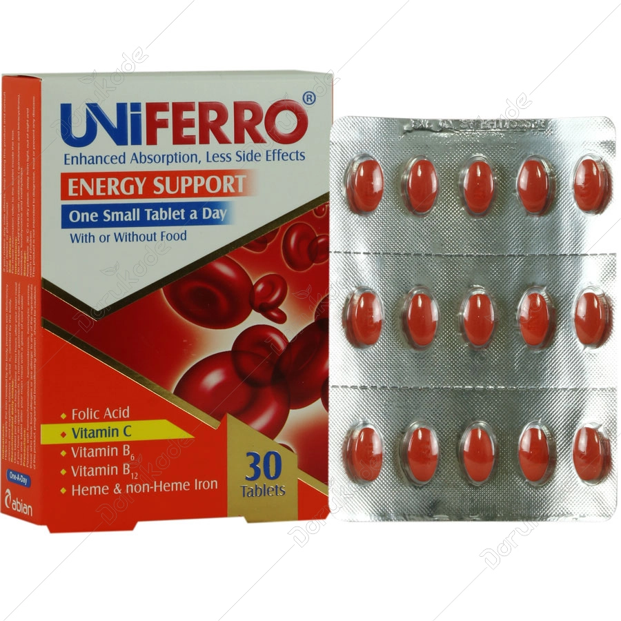 این مکمل جهت کمک به بهبود و جلوگیری از کم خونی ناشی از فقر آهن به کار می رود. حضور کوفاکتورهای مهم ویتامین C، فولیک اسید و ویتامین B12 سبب افزایش جذب آهن می گردند. شایع ترین علائم ناشی از کم خونی فقر آهن شامل احساس سستی، خستگی، سرگیجه، ابتلای مکرر به بیماری های ویروسی مانند آنفلوانزا، ناخن های قاشقی شکل، خواب رفتن و گزگز دست و پاها، رنگ پریدگی و زخم غیرطبیعی گوشه لب می باشد و مکمل یونی فرو در بهبود این علائم نقش بسزایی را ایفا می نماید.