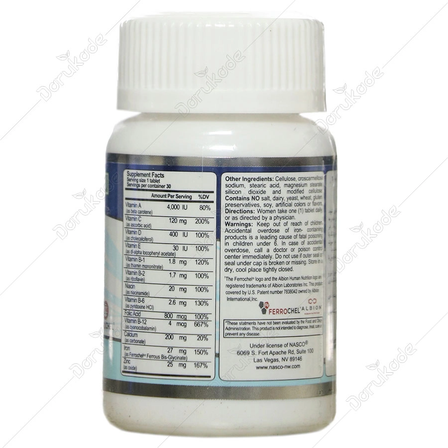 | Iron (as Ferrochel Ferrous Bis-Glycinate) | 27 mg |