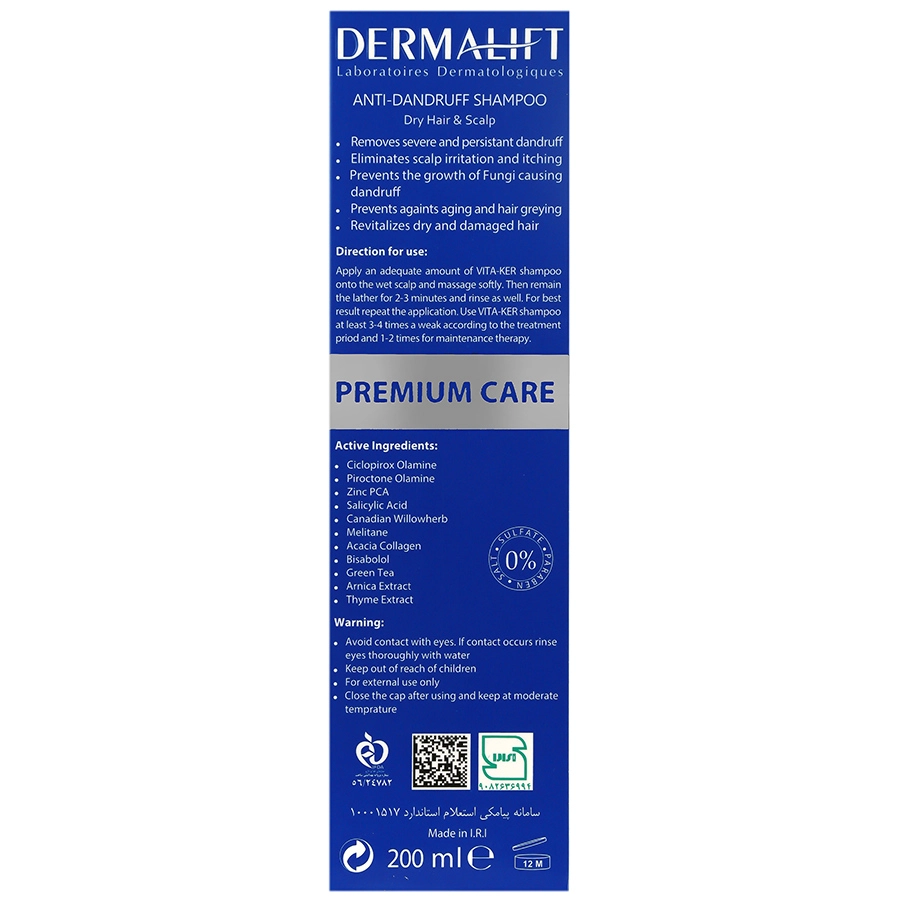 شامپو ضد شوره ویتاکر درمالیفت مناسب افراد دارای شوره و کف سر خشک حاوی جدید ترین و موثرترین ترکیبات ضد شوره و التیام بخش پوست سر می باشد. این شامپو علاوه بر رفع شوره های مقاوم یه درمان ، باعث رفع خشکی و التهاب پوست سر گردیده و موها را نرم و درخشان می کند.