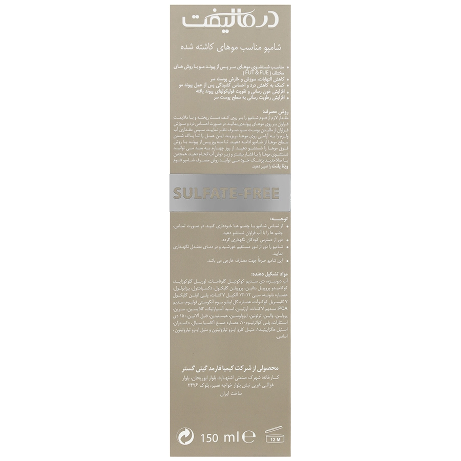 شرکت کیمیا فارمد گیتی گستر، پس از سال ها تحقیق و بررسی و با همکاری کارشناسان زبده و مجربخارجی برای اولین بار در ایران موفق به تولید شامپو نسل جدید درمالیفت مناسب موهای کاشته شده گردیده است.