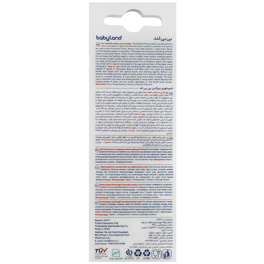 شیرخوری پیرکس کلاسیک بی بی لند از مواد اولیه مرغوب تهیه شده و فرآیند ویژه تولید بطری آن، مقاومت فوق العادهای در برابر دمای بالا و شوکهای حرارتی در آن ایجاد کرده است. سرشیشه فندقی فوق العاده نرم این محصول، اقتباس گرفته شده از سینه مادر بوده و با ایجاد فشار یکنواخت بر روی لثه، به ساختار فک آسیب نمیرساند.