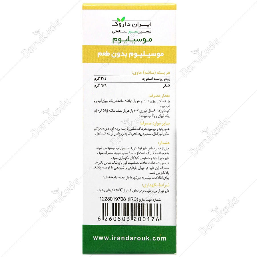 تهیه شده از پودر دانه گیاه اسفرزه (Plantago ovata) به میزان 3.4 گرم در هر ساشه
